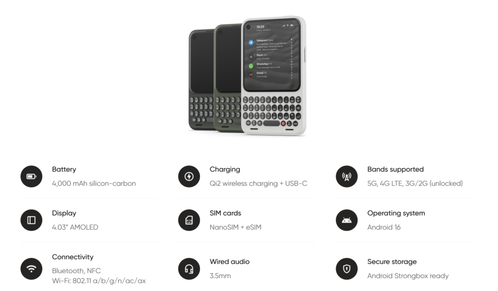La cosa sorprende, perché il Communicator ha cover posteriori intercambiabili. Un elemento che solitamente complica, se non impedisce, l’integrazione di magneti per l’allineamento perfetto richiesto da Qi2. E invece Clicks conferma: ci siamo riusciti. Sarà il sesto dispositivo Android a vantare questa feature, dopo i quattro Pixel 10 e il pionieristico Skyline.